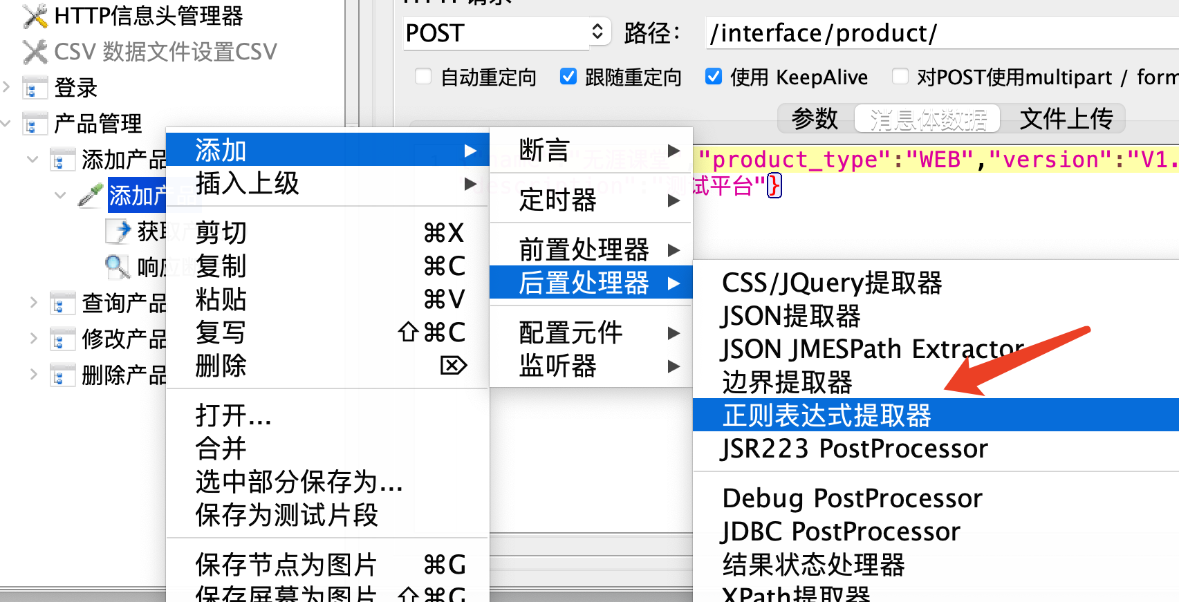 后置处理器 JSON提取器/正则表达式提取器