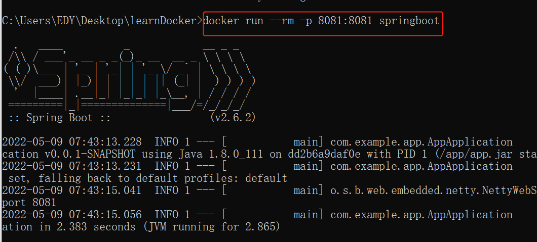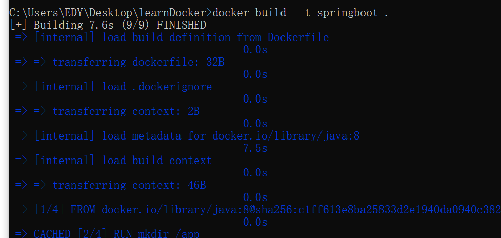 docker build -t springboot . (-t 后面命名 必须是小写)