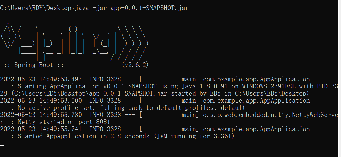 c.启动java应用程序: java -jar 包名