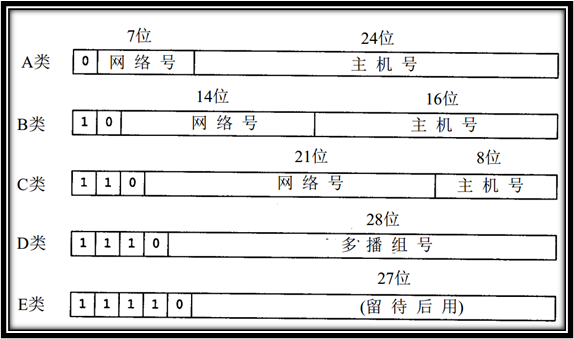 IPV4地址编址方案有A、B、C、D、E五类,其中A、B、C是基本类,D、E类作为多播和保留使用,如下为分类详解: