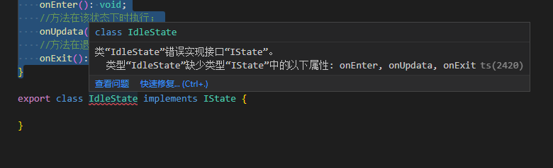 /** IState 接口*/ export interface IState { //方法在进入状态时执行; onEnter(): void; //方法在该状态下时执行; onUpdata(): void; //方法在退出该状态时执行。 onExit(): void; }