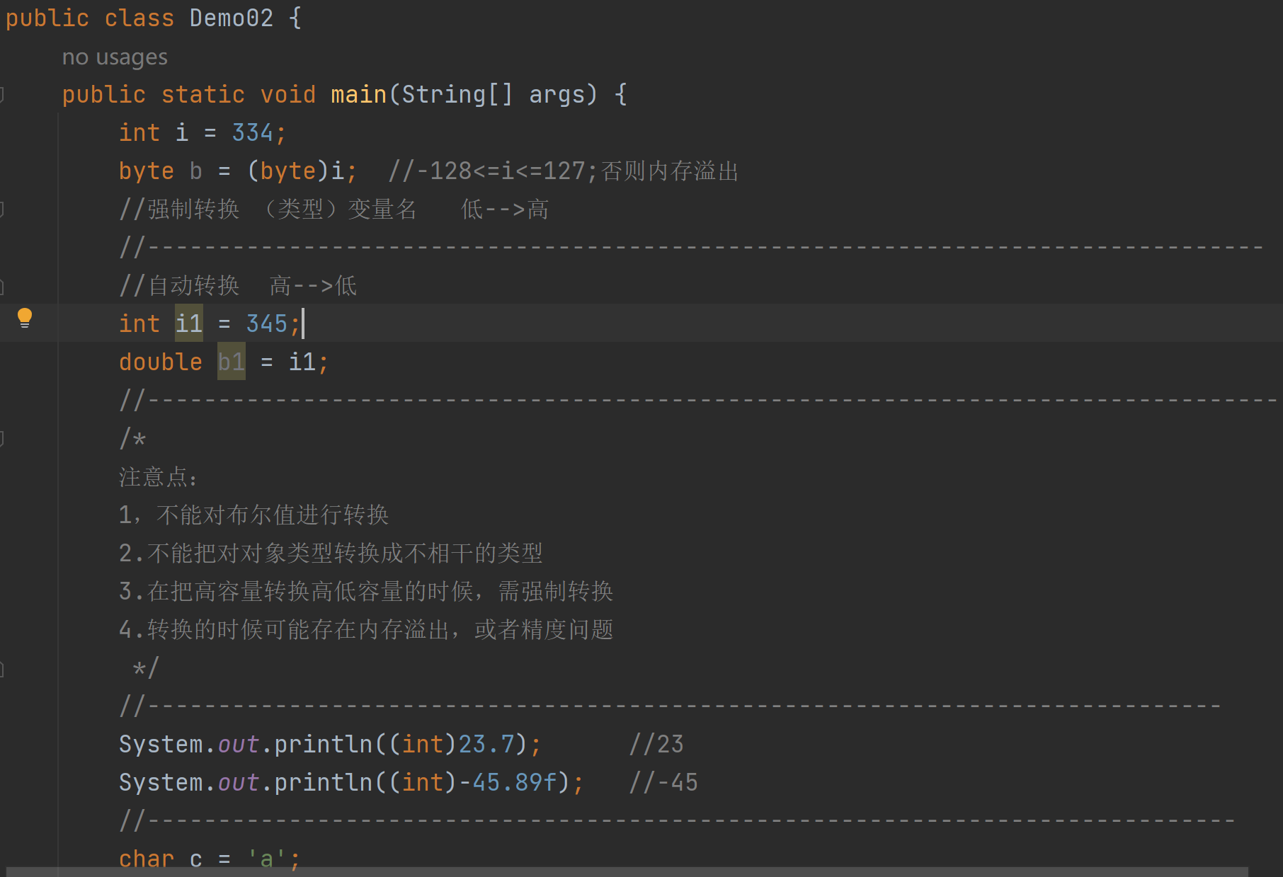Java的基本语法-类型转换及遇到的问题