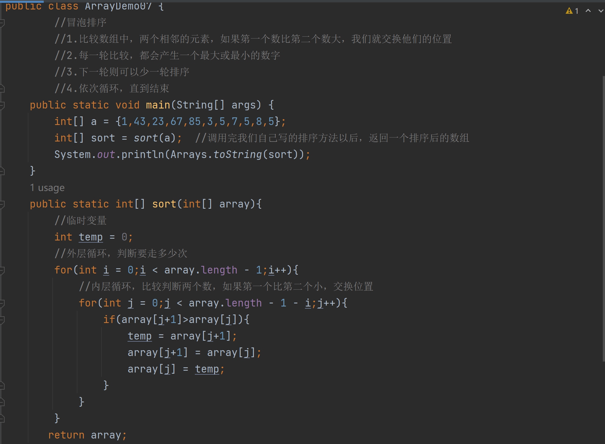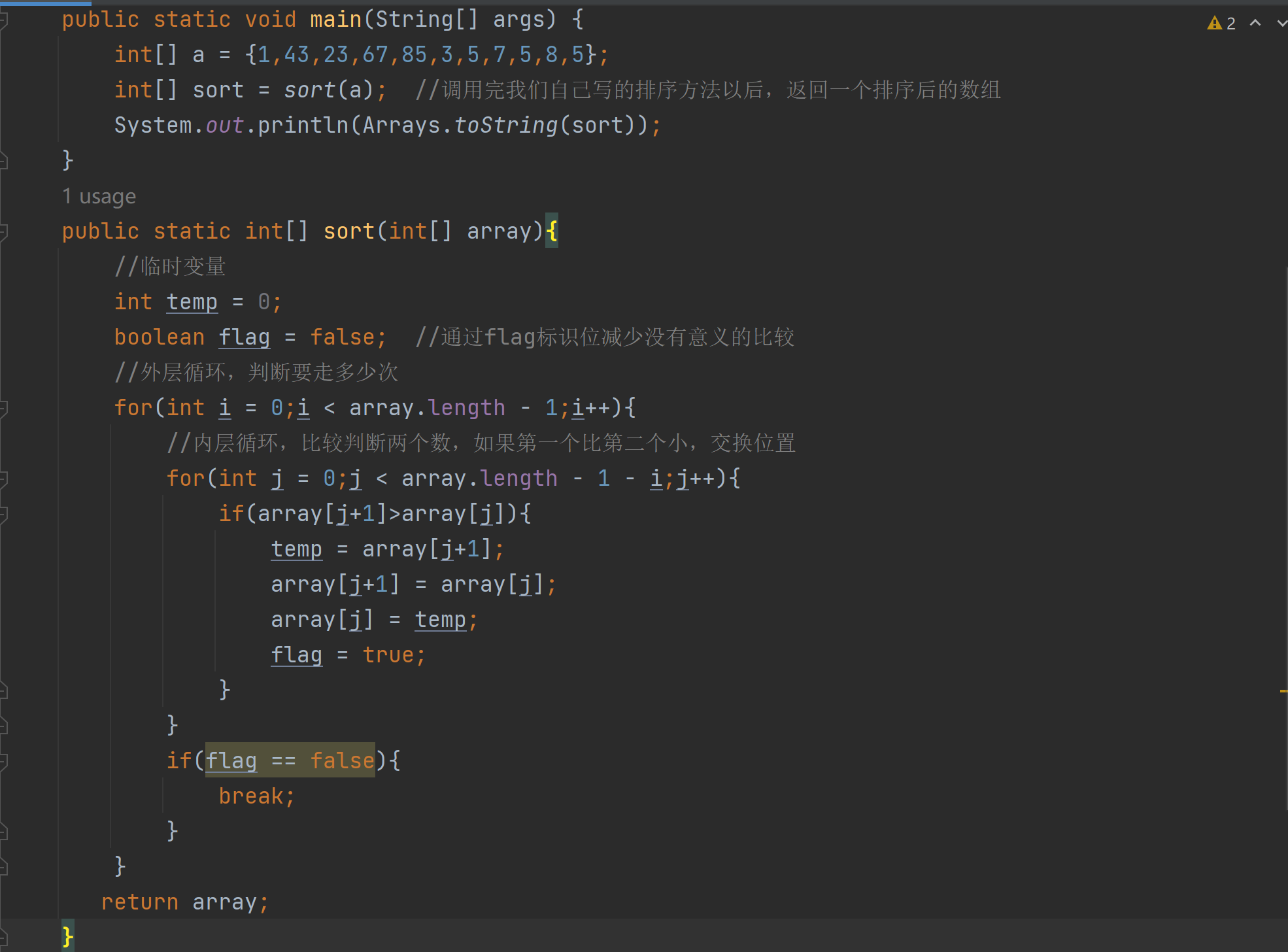 冒泡的代码是两层循环,外层冒泡轮数,里层依次比较