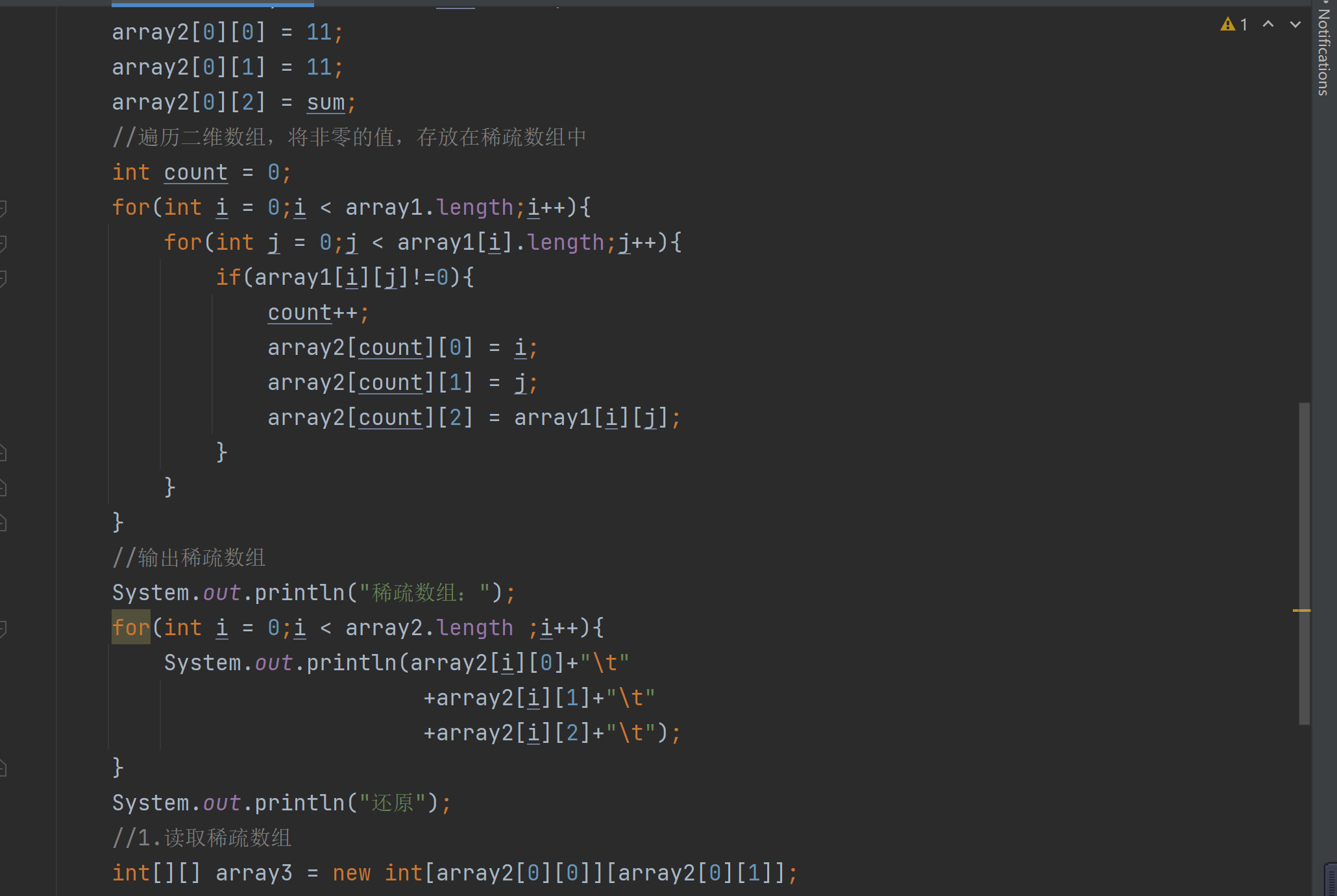 当一个数组中大部分元素为0,或者为同一值的数组时,可以使用稀疏数组来保存该数组