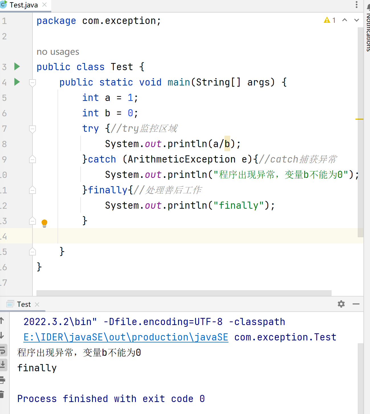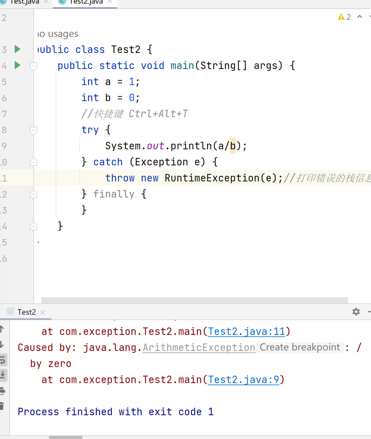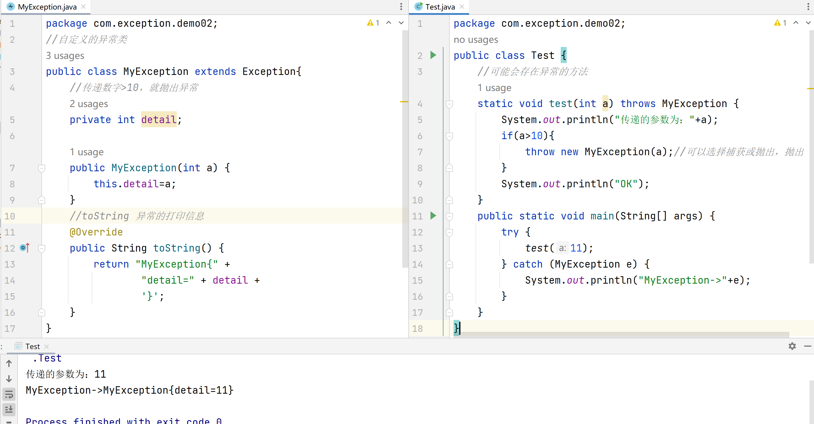 在程序中使用自定义异常类,大体可分为以下几个步骤