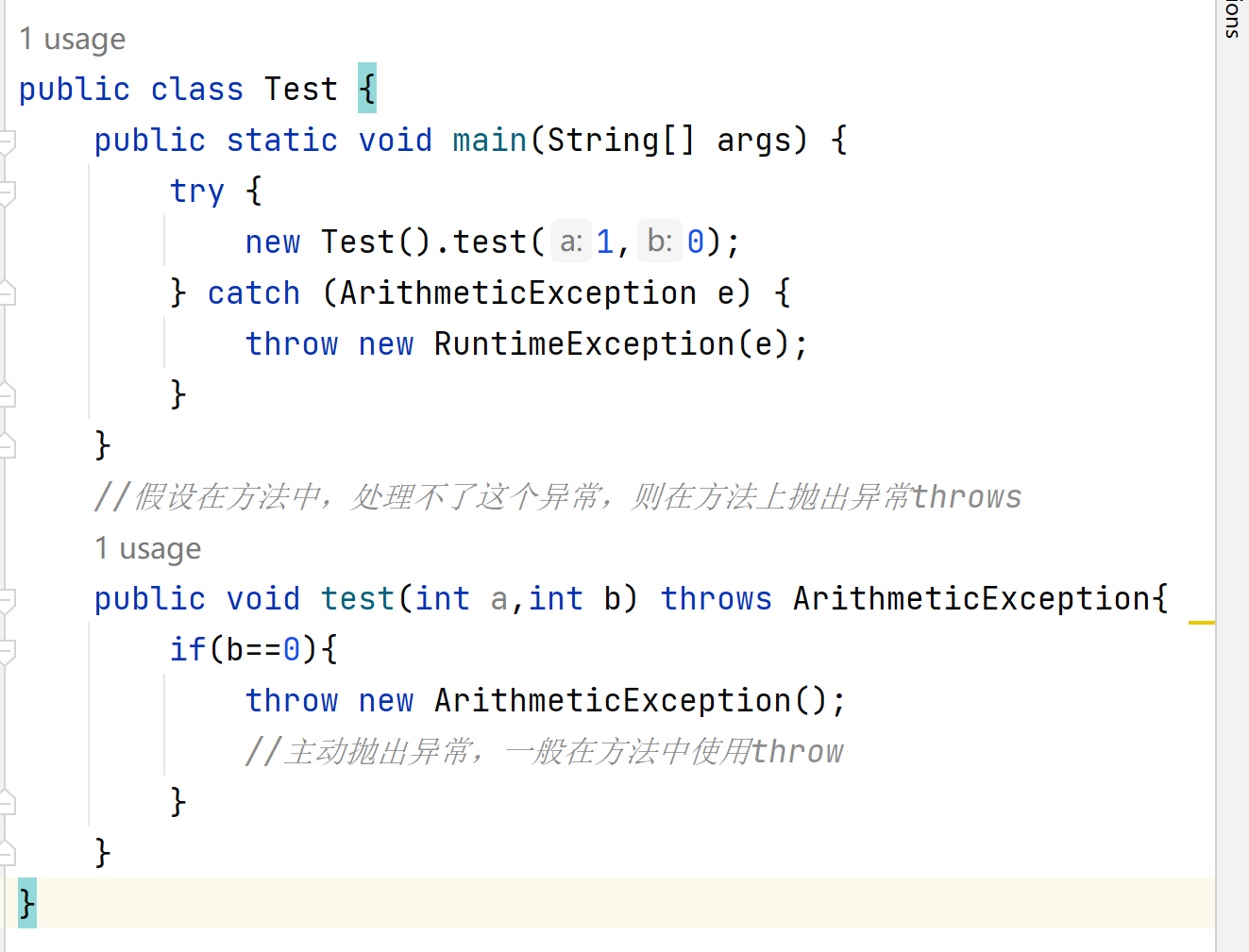 3.如果在当前抛出异常的方法中处理异常,可以使用try-catch语句捕获并处理;或者在方法的声明处通过throws关键字指明要抛出给方法调用者的异常,继续进行下一步操作