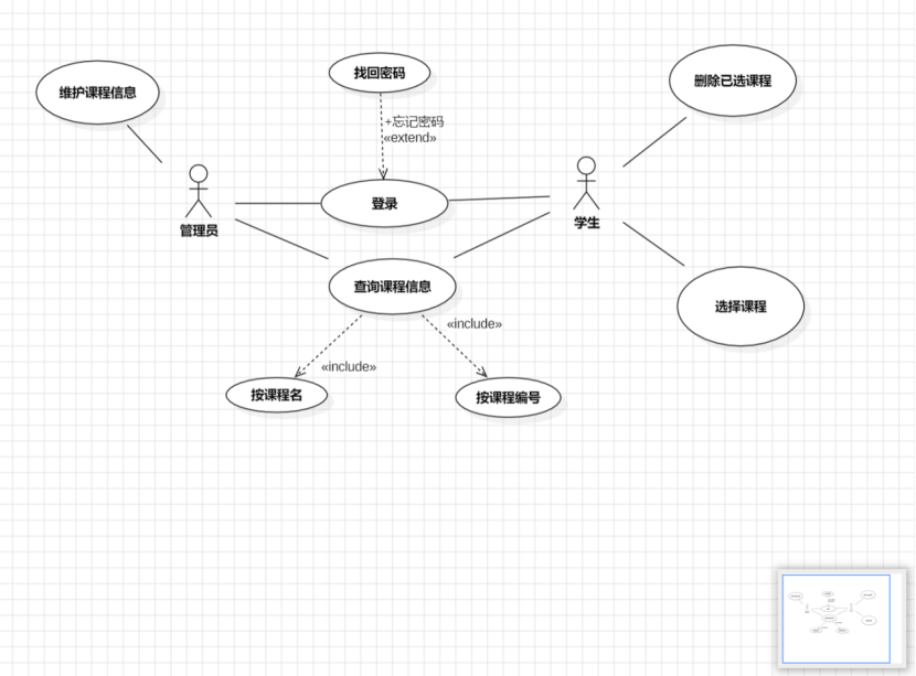 某网上选课系统,功能包含: 参与者有系统管理员与学生,都需要登录(若参与者忘记,还需要提供找回密码的功能)。
