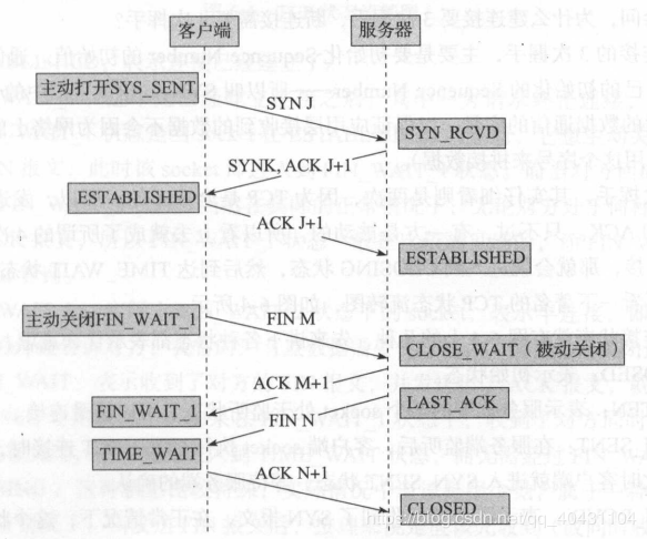 客户端发送SYN包(SYN=J)到服务器,并进入SYN_SENT状态,等待服务器确认。
