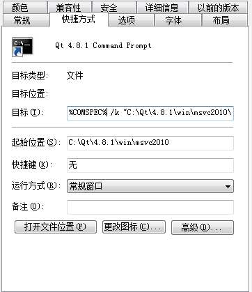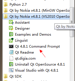 3.启动该版本的qt(使用开始菜单里边的command line启动,因为该快捷方式包含的环境变量的设置)