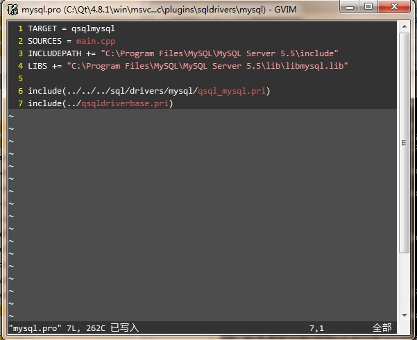 5.打开mysql.pro,添加相应的环境变量: