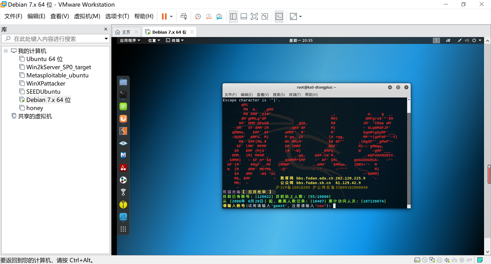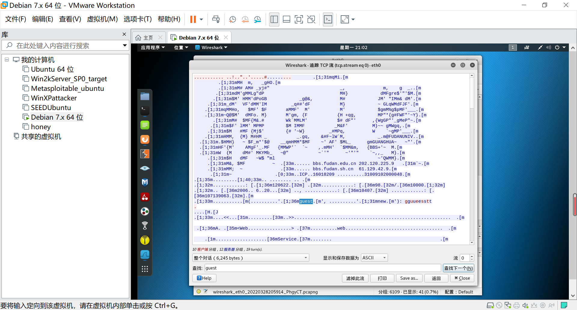 iv.选择下方的对话从本机IP: 192.168.11.24到复旦大学BBS的IP: 202.120.225.9,可以发现用户名为guest,密码为空。如下所示: