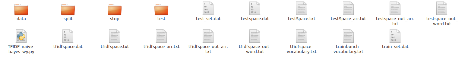 saveFile(tfidfspace_out_word_path, tfidfspace_out_word) # 文本形式的train_set.txt
