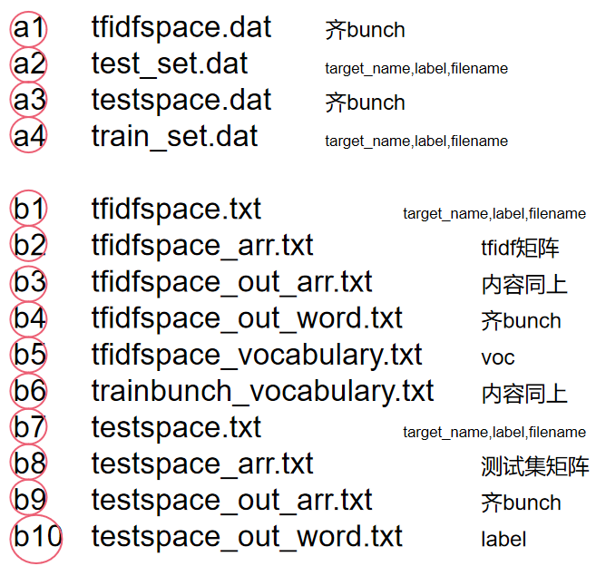 前两行乍一看也是一样的,其实是生成了辅助文件b⑥,其内容跟训练集的vocabulary是一样的,就是因为它的词袋就是训练集的