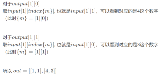 out[i][j][k]就是先获取index[i][j][k],设为a,dim为1,结果即为input[i][a][k]