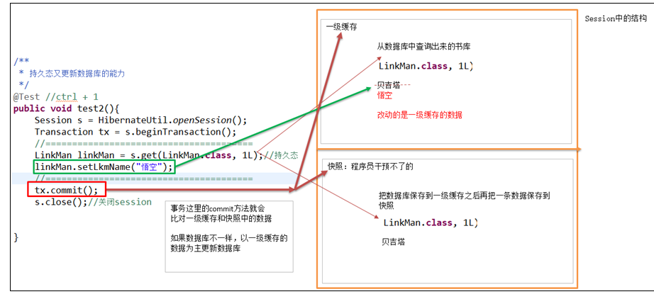 由于有快照机制和一级缓存,所以持久态对象能更新数据库。