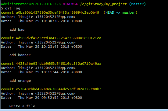 如果嫌输出信息太多,看得眼花缭乱的,可以试试加上--pretty=oneline参数:
