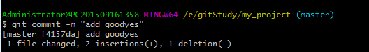 简单解释一下git commit命令,-m后面输入的是本次提交的说明,可以输入任意内容,当然最好是有意义的,这样你就能从历史记录里方便地找到改动记录。