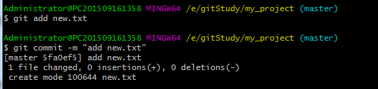 在Git中,删除也是一个修改操作,我们实战一下,先添加一个新文件new.txt到Git并且提交: