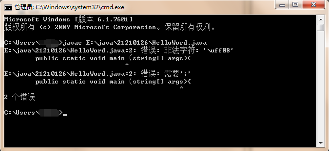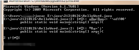 1、问题:用cmd编译java脚本时,出现乱码,如图: