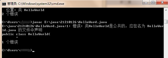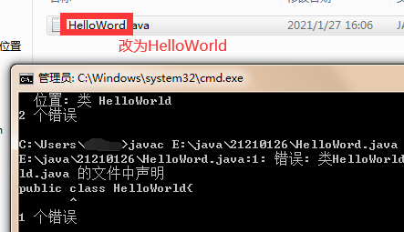 原因及解决方法:公有类名(HelloWorld)与java文件名称(HelloWord.java)不一致,所以报错。将“公有类名”和“java文件名称”修改成一致的名称。