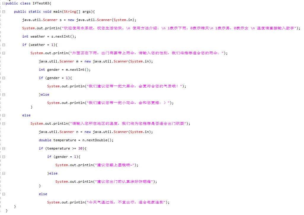 1、提示数据类型无法转换是因为代码中写的是 weather = 1,用的赋值运算符,应该用==来判断weather的值是否等于1