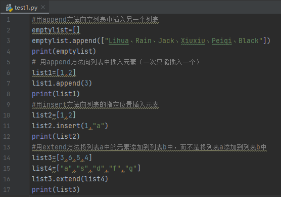 向列表中添加元素时,append方法、insert方法、extend方法的区别