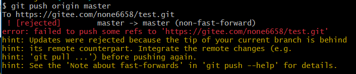 此时我们要执行git pull --rebase origin master命令README.md拉到本地,