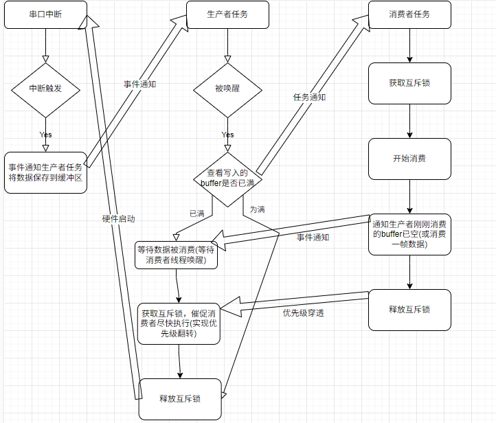 当生产者线程未满时,使能相关硬件执行生产(一般为adc或串口的DMA中断)