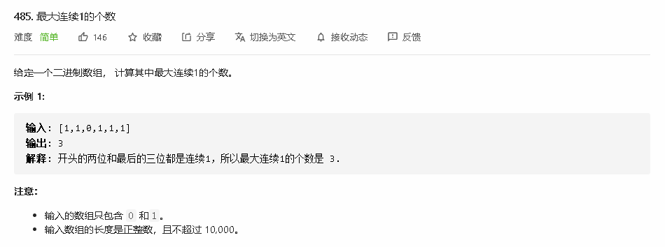leetcode(刷题第一天)——485. 最大连续1的个数