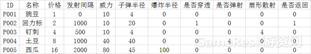 以豌豆射手为基本模型,确定其他几种武器的定价: