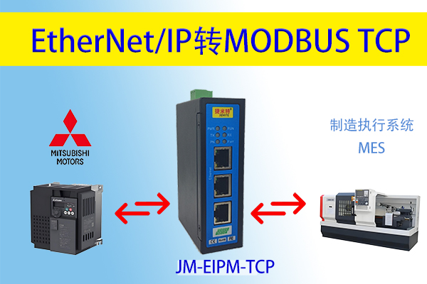 - 捷米特JM-EIPM-TCP网关:捷米特JM-EIPM-TCP 协议转换模块具有两个独立的以太网接口,一个接口用于连接三菱变频器所在的 EtherNet/IP 网络,另一个接口则连接 MES 系统所在的 MODBUS TCP 网络。