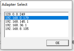 双击EIPscan软件图标EIPscan Test Tool打开软件,在弹出窗口选择PC本机IP地址,如下图: