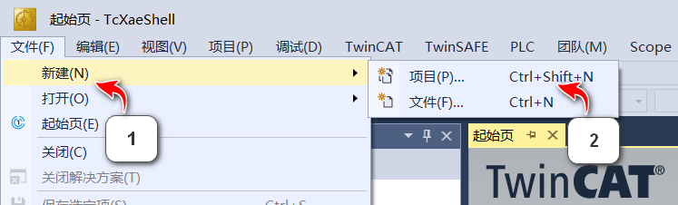 在TC3主菜单栏执行“文件”-“新建(N)”-“项目(P)…”;