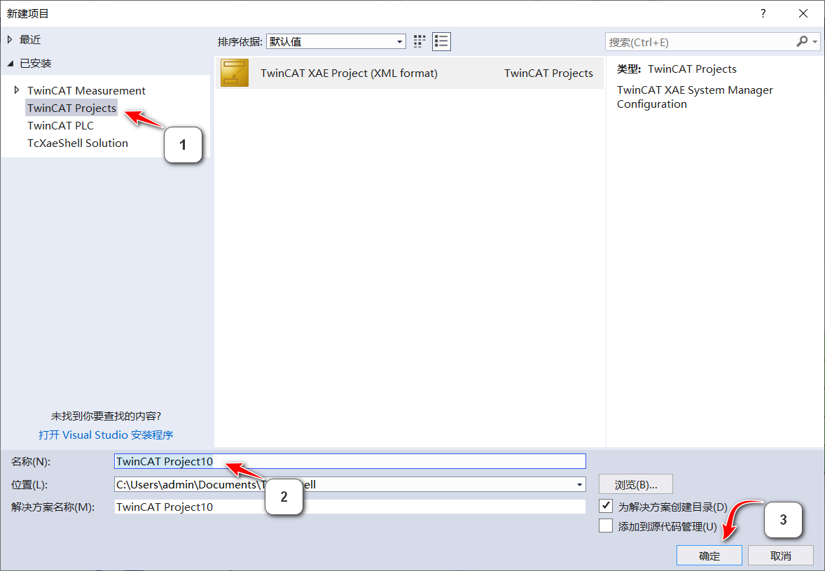 选择TwinCAT Project,修改工程名称,点击“确定”;