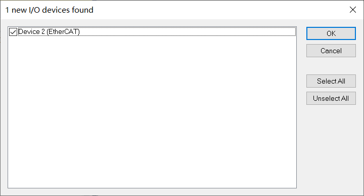 点击“确定”按钮,弹出“1 new I/O devices found”对话框,选择所需要的Ethernet接口,点击“OK”;