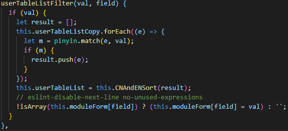情况描述:使用element-ui的select组件的filter-method方法实现拼音搜索,