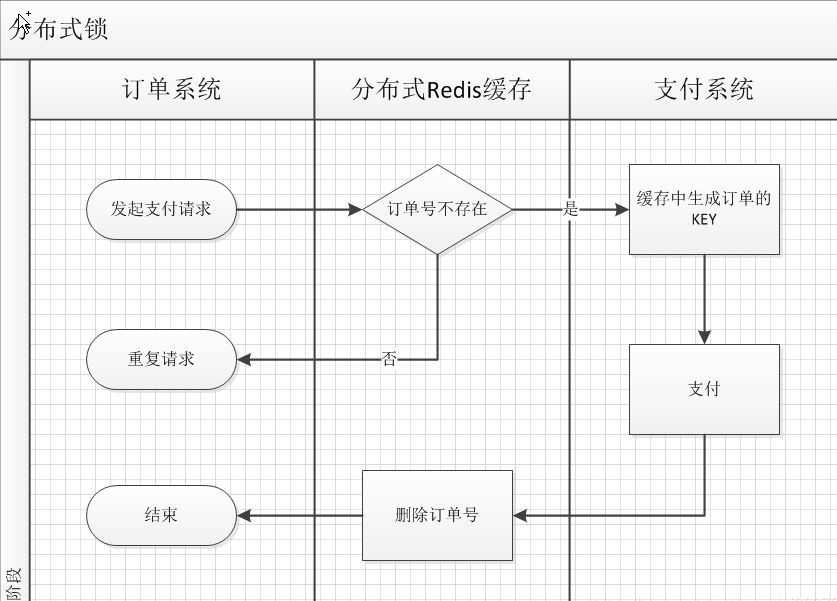 这里使用的防重表可以使用分布式锁代替,比如Redis。订单发起支付请求,支付系统会去Redis缓存中查询是否存在该订单号的Key,如果不存在,则向Redis增加Key为订单号。查询订单支付已经支付,如果没有则进行支付,支付完成后删除该订单号的Key。通过Redis做到了分布式锁,只有这次订单订单支付请求完成,下次请求才能进来。相比去重表,将放并发做到了缓存中,较为高效。思路相同,同一时间只能完成一次支付请求。