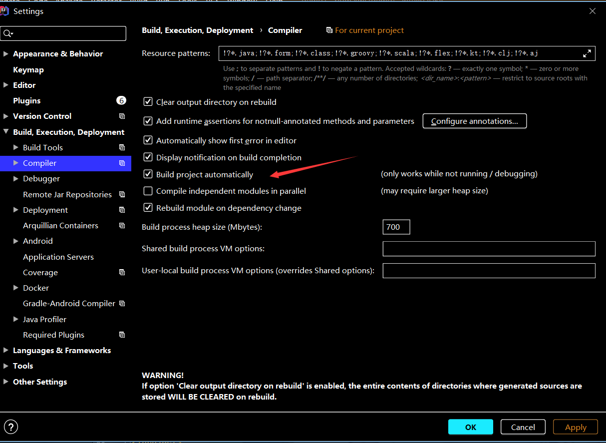 - File-Settings-Compiler-Build Project automatically