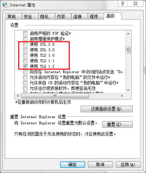 保留TLS1.2。 修改完成后,先应用,后确认。