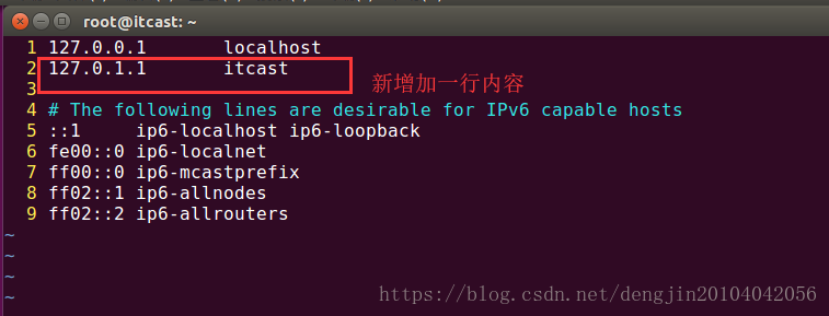 第二步:修改/etc/hosts配置文件(可选) /etc/hosts存放的是域名与ip的对应关系,域名与主机名没有任何关系,你可以为任何一个IP指定任意一个名字。