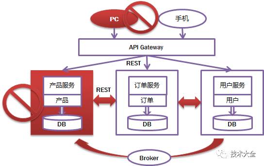 比如订单微服务和电影微服务原来都是用java写的,现在我们想把电影微服务改成nodeJs技术,这是完全可以的,而且由于所关注的只是电影的逻辑而已,因此技术更换的成本也就会少很多。