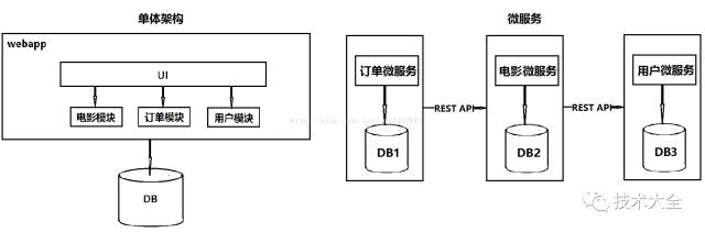 单体架构所有的模块都共用一个数据库,存储方式比较单一,微服务每个模块都可以使用不同的存储方式(比如有的用redis,有的用mysql等),数据库也是单个模块对应自己的数据库。