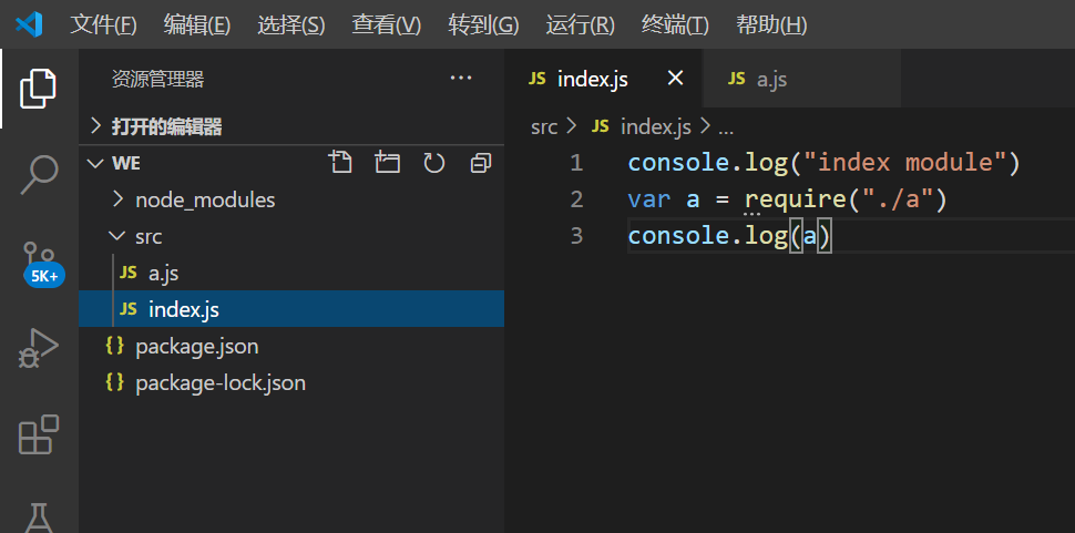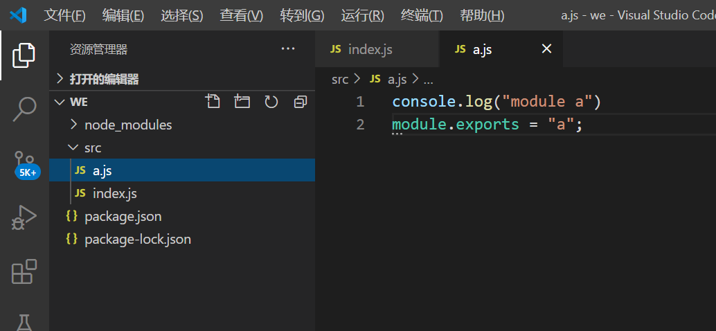 第一步 如上图,在src文件夹里写了两个js文件,代码很简单。