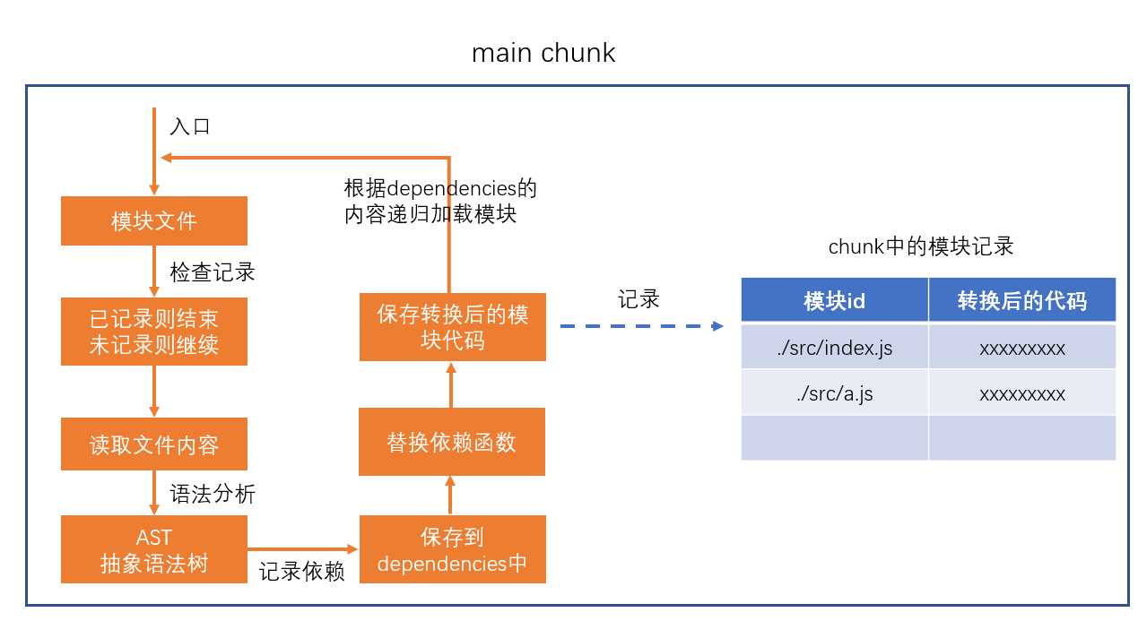 chunk是webpack在内部构建过程中的一个概念,译为块,它表示通过某个入口找到的所有依赖的统称。