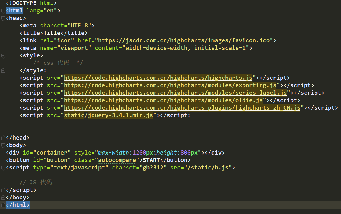 jquery和highcharts可以用线上资源,我这里jQuery是直接自己网上下载文档放入static文档引入的