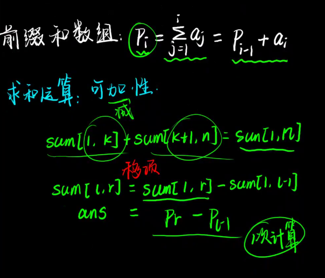 要求 l - r 区间的和即求 : pre[r]-pre[l-1];