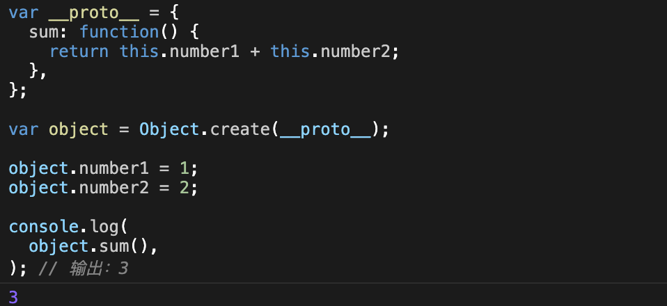 number1 和 number2 都是 object 变量的属性,但却可以被 sum 方法中的 this 访问到,所以在原型链的方法中,this 指向的就是调用该方法的对象。