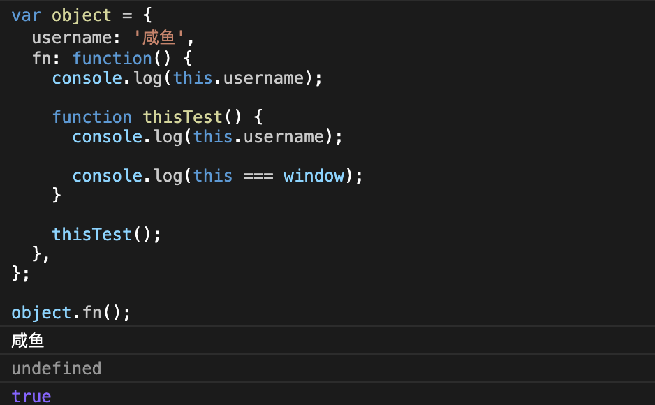 这里 thisTest 方法输出的 username 就会是个 undefined,因为他的 this 指向的是 window,因为他不属于 object 对象的一个方法,所以 this 就指向了 window。在回调函数中经常会碰到这个问题: