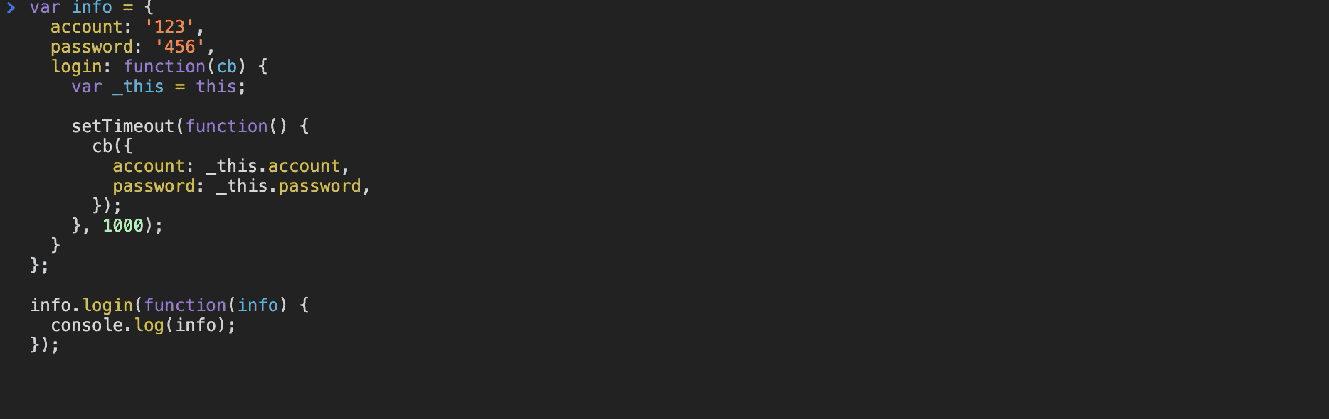 这里回调函数获取的账号和密码是 undefined,原因就是 this 的指向问题。
