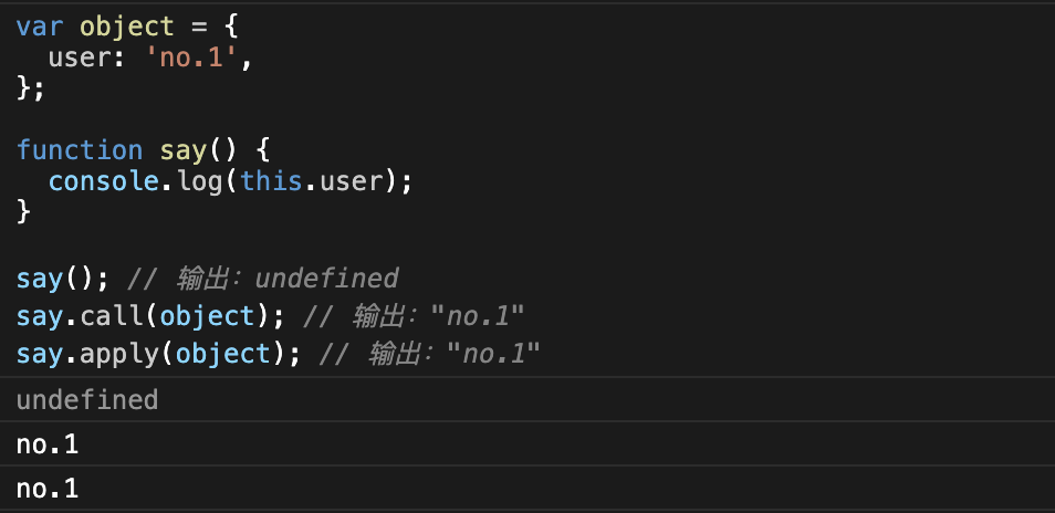 通过 call 和 apply 方法将 say 函数执行时候的 this 设置为 object 对象。